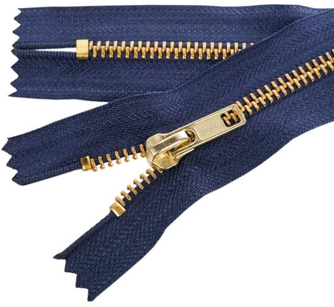 Sárgaréz fogazatú zárt cipzár (nem bontható) 16 cm hosszú. 5 mm széles fém fogazattal rendelkezik, erős és tartós típus. A hordozó textilszalag szélessége 3,3 cm. Alkalmas például ruházati cikkek, lábbelik, dekorációs termékek, táskák, nadrág slicc és zseb, kabátzsebek készítésénél és javításánál.
